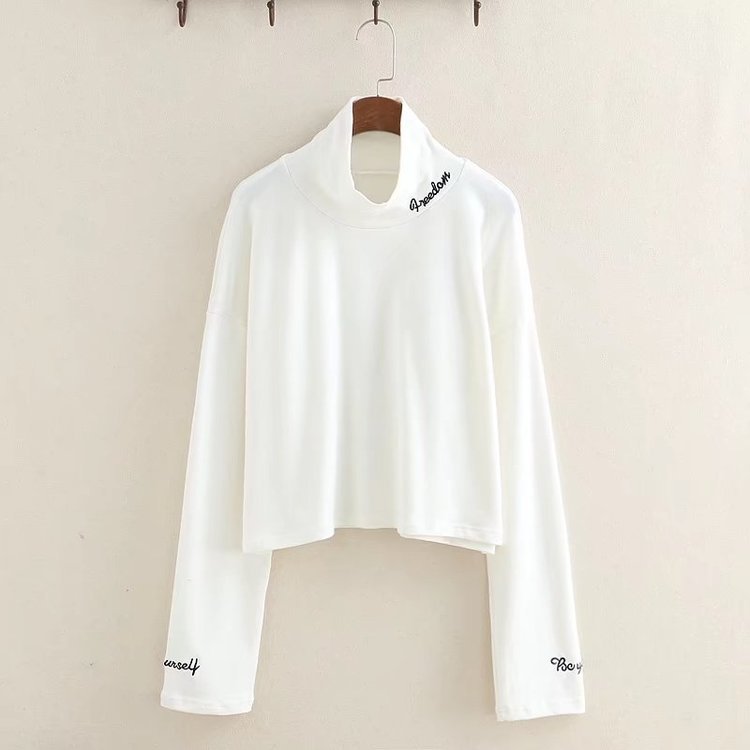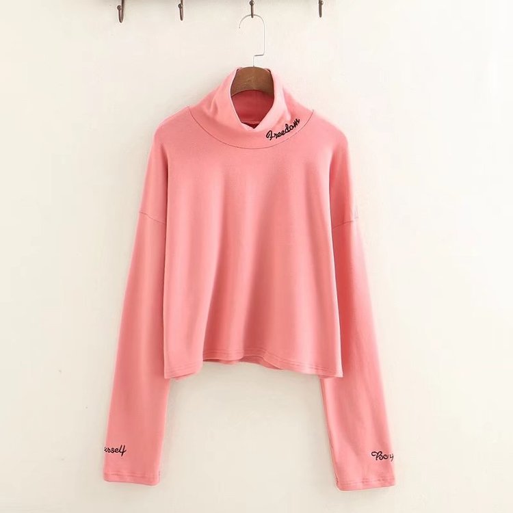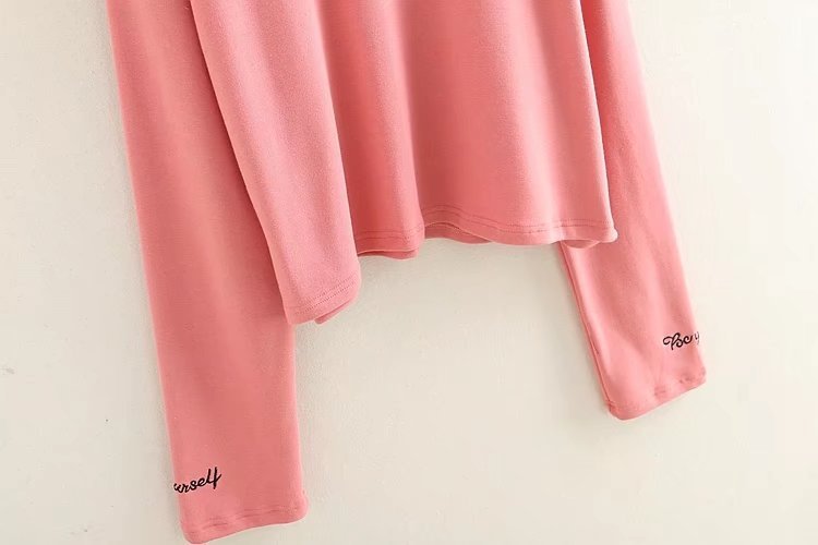 長袖t恤女寬松韓版學生百搭秋冬新款刺繡短款純棉套頭上衣潮S6409